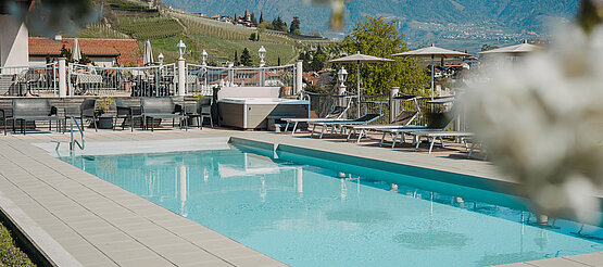 Unsere kleine Pension befindet sich in Tscherms bei Meran und besteht aus 8 Zimmern sowie 2 Ferienwohnungen. Besonders geschätzt wird unsere ruhige Lage inmitten von Obst- und Weingärten, unser großes Schwimmbad unser neuer Whirlpool sowie das Frühstück auf der großen Sonnen-Terrasse.
